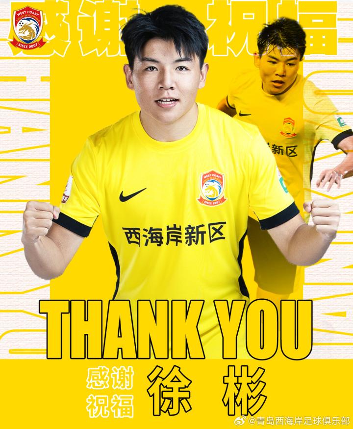 感謝·祝福|球員徐彬離隊(duì)公告 經(jīng)與球員徐彬及相關(guān)俱樂部友好協(xié)商并達(dá)成一致,徐彬正式告別青島西海岸足球俱樂部,加盟英超狼隊(duì),開啟赴歐洲聯(lián)賽的留洋征程。