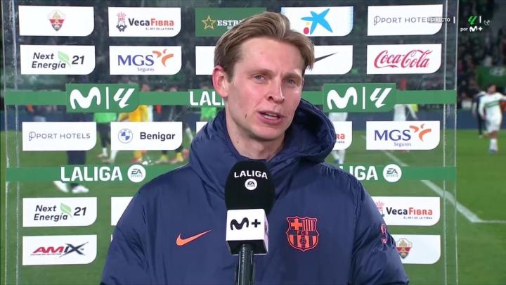 客場(chǎng)3-1擊敗埃爾切后,巴薩繼續(xù)領(lǐng)跑西甲積分榜,中場(chǎng)德容賽后代表球隊(duì)接受了Movistar+的采訪。